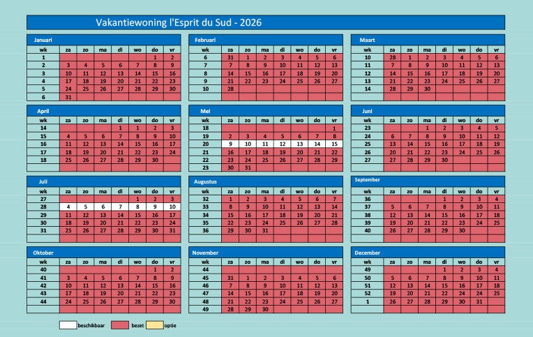 Verhuur AGENDA 2026 - Vakantiewoning ANDUZE